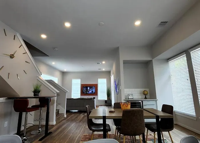 Campus Central da Igreja de Lakewood está localizado a 10 minutos de carro deste apartamento de 3 quartos. O apartamento Galleria Exquisite Three Story Home Brand New Development de 167 m² está localizado a 7 km da Colecção e Jardins de Bayou Bend.